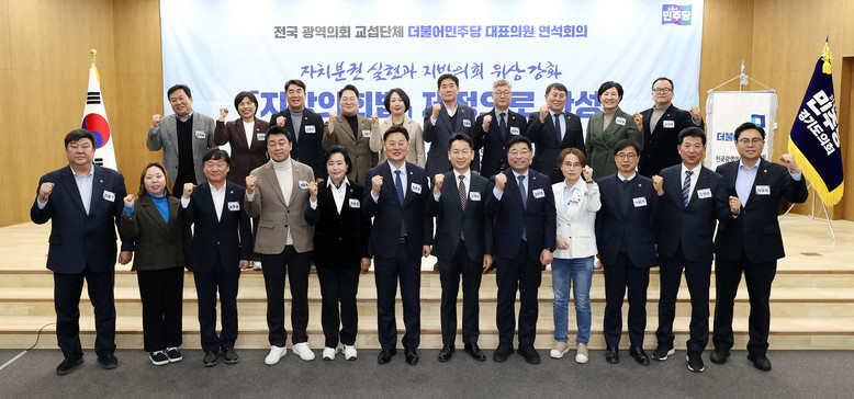 | ▲전국광역의회 교섭단체 더불어민주당 대표의원 연석회의 기념촬영.(사진=경기도의회 더민주) |