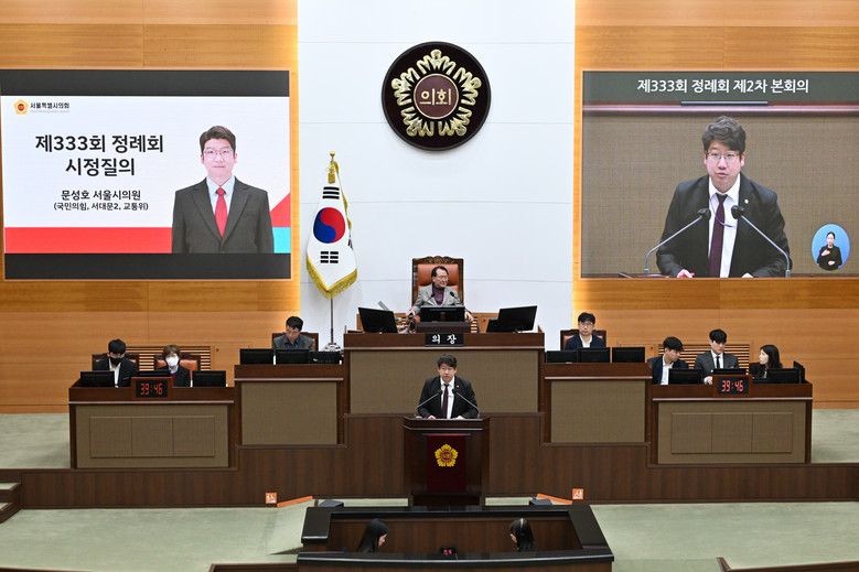 | ▲ 제333회 서울시의회 정례회 시정질의 당시 문성호 서울시의원의 모습. 내용과는 무관 |