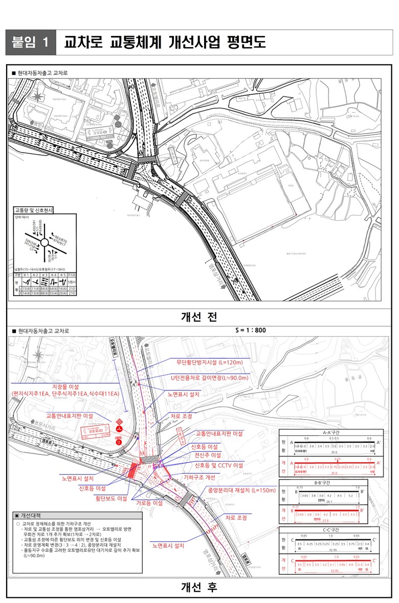 울산시는 현대자동차 출고센터 앞 교차로의 원활한 차량 소통과 교통사고 예방을 위해 교차로 개선공사에 착수한다고 밝혔다.