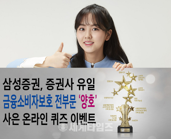 [세계타임즈 이채봉 기자]삼성증권은 금융감독원의 금융소비자보호 실태평가에서 전 부문 '양호' 평가를 기념한 사은 이벤트를 22일까지 진행한다고 6일 밝혔다.