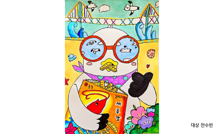 제1회 농심 스낵 어린이 그림대회 대상에 안수빈(아산 월천초등학교 2학년) 학생의 작품이 선정됐다. 안수빈 학생은 “여름휴가 때 새우깡을 먹는 갈매기와 선글라스에 비친 갈매기 친구들을 상상하며 그렸다”라며, “날개와 입 모양을 강조했는데, 좋게 평가해 주신 것 같다”라고 말했다. 농심은 총 59명의 수상자에게 다양한 선물을 증정할 계획이다.