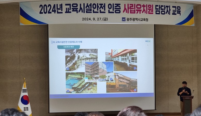 [광주 세계타임즈=손권일 기자] 광주시교육청은 지난 27일 광주교육시민협치진흥원 대강당에서 교육시설안전 인증 대상 130개 사립유치원 담당자 200여 명을 대상으로 ‘2024년 교육시설안전 인증 사립유치원 담당자 교육‘을 실시했다.