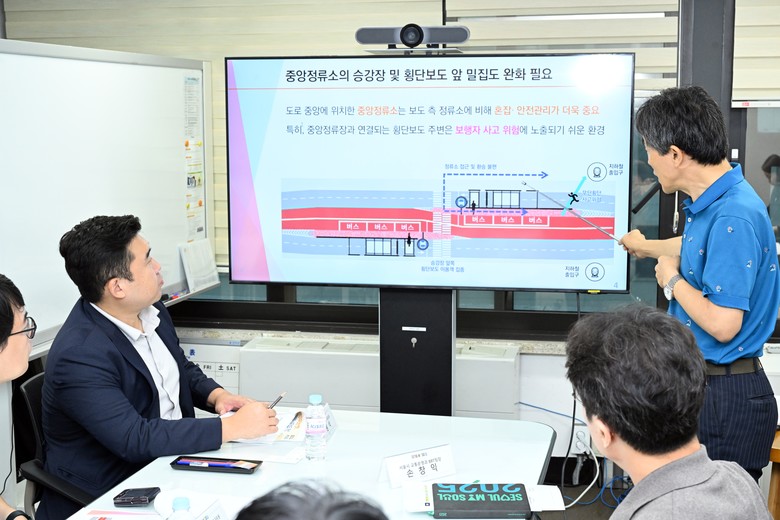 연구모임은 먼저 서울시청 교통운영과 관계자와 간담회를 갖고 중앙버스정류소의 보행 접근성 개선 방안, 혼잡 지역 보행 안전성 확보를 위한 시설 설치 사례, 관련 제도 및 운영정책 등을 심도 있게 논의했다.