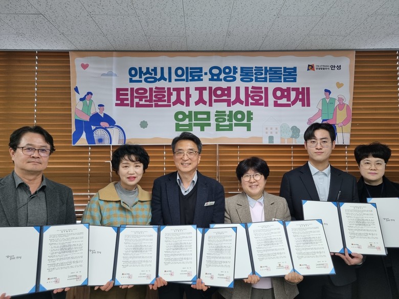 안성시보건소장은 “이번 협약을 통해 퇴원환자의 안정적인 재가복귀를 위한 기반을 마련하게 됐다”라며, “앞으로도 의료기관과 지속적으로 협력하여 살던 곳에서 노후를 보낼 수 있도록 통합돌봄 체계를 강화하겠다”라고 말했다.