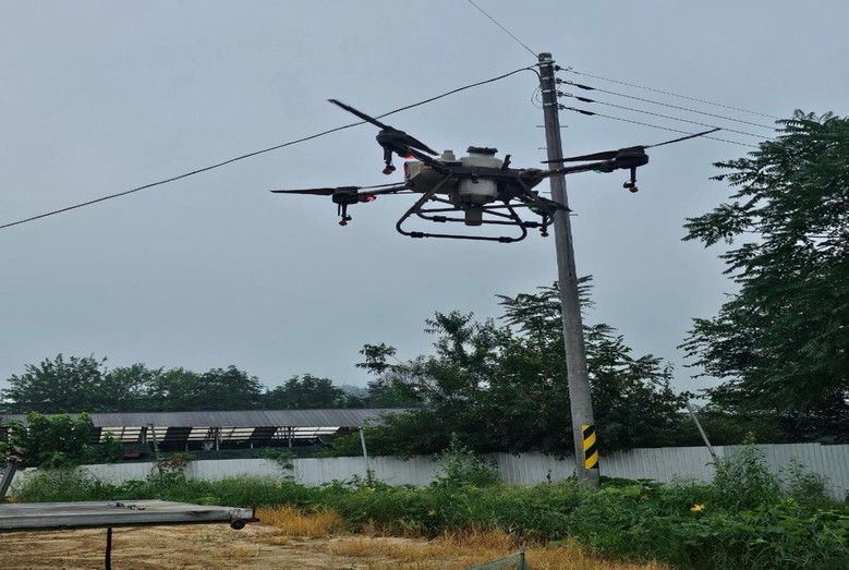 가을 수확기 야생멧돼지 농장 침입 위험이 높아짐에 따라 군은 민·관 협력 방식으로 드론을 투입해 농장 주변에 기피제를 집중 살포했으며, 접근이 어려운 임야 지역까지 방제 범위를 확대해 차단 효과를 극대화했다.
