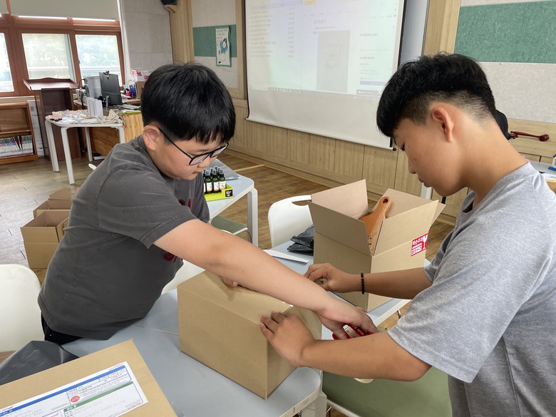 전교생 19명은 7월 도전 주간 동안 역할을 나누어 상품 기획, 제작, 촬영, 홍보, 주문, 배송, 정산 등 전 과정을 스스로 설계하고 실행했으며, 네이버 스마트스토어를 통해 실제 판매까지 이어가는 디지털 창업형 프로젝트로 운영했다.