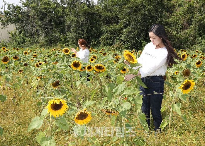 이곳 해바라기는 호리호리한 허리를 가진 키 큰 일반 해바라기 투어 토마스와 달리 키 작은 링오브화이어와, 썬리치오렌지, 야생 해바라기가 고루 파종됐다.