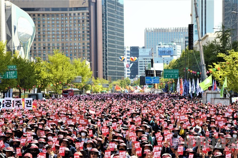 서울 광화문 세종대로 일대에서 '2023 세계 노동절 대회'를 열고 있다.