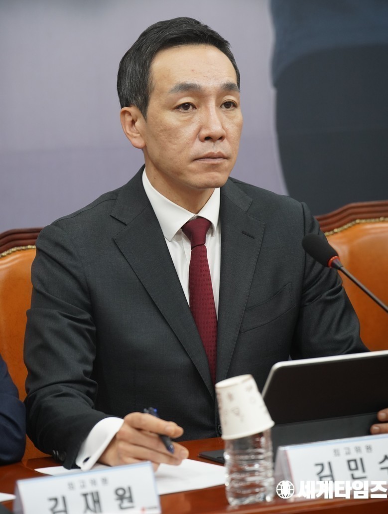 국민의힘 '김민수' 최고위원이 8일 서울 여의도 국회에서 열린 최고위원회의에서 발언하고 있다.