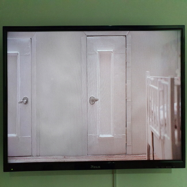 이번 전시에서 가장 인상 깊었던 작품, 마치 한 편의 공포영화를 보는 것 같았다. 보이지 않는 미지의 존재에게서 느끼는 두려움과 불안감. 영상 속의 시선은 타국의 유령처럼 느껴진다. 앞서 말했듯 우리 인간이 보이지 않는 존재를 얼마나 두려워하는지 느낄 수 있었다. 어쩌면 두려움과 불안은 내면에서부터 생기는데, 그 내면조차 내 눈에는 보이지 않으니 말이다.
