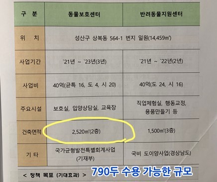 (동물공감연대가 제시한 자료. 동물공감연대는 창원시가 통합 동물보호센터의 준공 규모를 대폭 축소해 유기견들의 실제 수용 공간이 대폭 줄었다고 주장하고 있다)