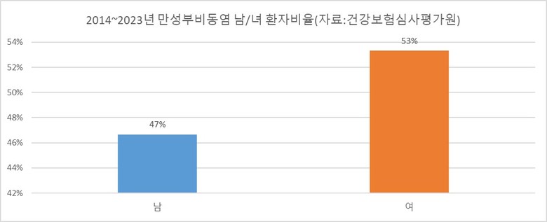 | ▲2014~2023년만성부비동염 성별환자비율.(자료제공=분당제생병원) |