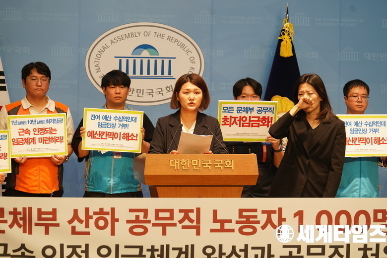 '손솔' 진보당 의원이 30일 오전 서울 여의도 국회 소통관에서 '문화체육관광부 공무직 처우 실태조사 결과 발표 기자회견'을 하고있다.