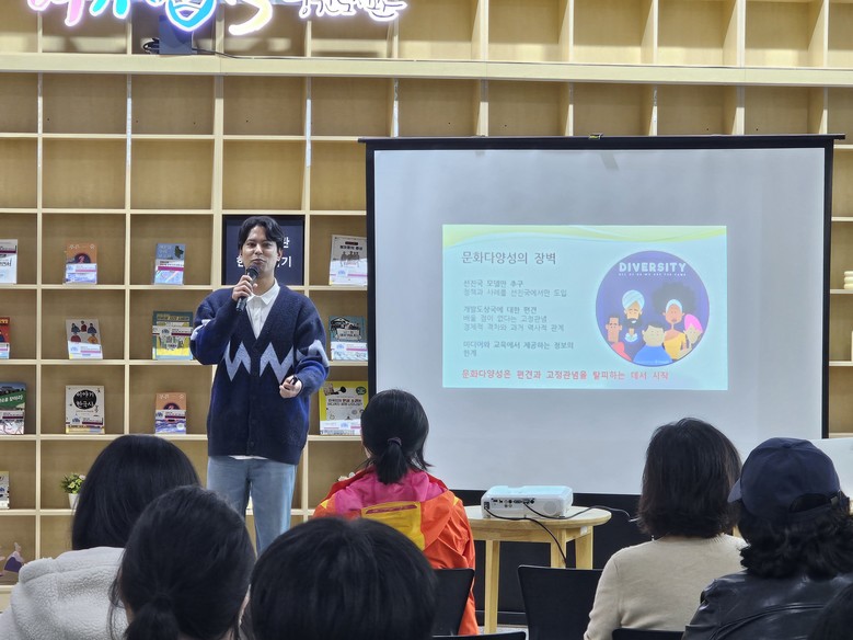 | ▲중원도서관의 다문화 서비스 운영 사례가 ‘2025년 다문화 서비스 사업’ 운영사례집에 수록됐다(다문화 작가 강연).[사진=성남도시개발공사] |