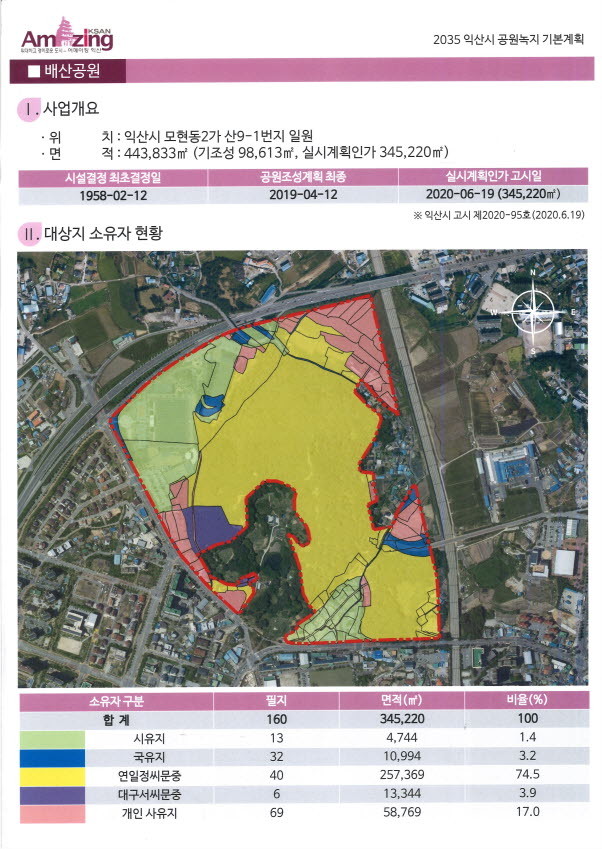 박 의원은 “배산공원은 현재 익산시 소유가 아닌 연일 정씨 문중 등 98% 이상이 사유지로 익산시민 대다수가 이 사실을 알지 못하고 있다. 익산시가 일정 기간 연일 정씨 문중과 계약을 체결하여 시민들이 배산공원을 이용할 수 있도록 제공하고 있다”며 “이러한 방식으로는 지속적인 배산공원 이용이 어렵기 때문에 장기미집행 공원 매입 방안을 강구해야 한다”고 말했다.