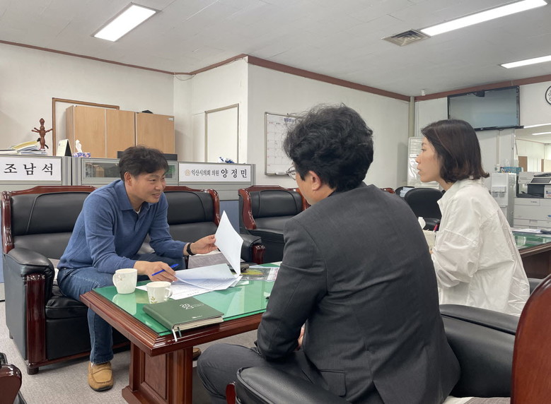 [익산=세계타임즈 이정술 기자] 익산시의회 보건복지위원회 박철원 의원(모현, 송학)은 10일(화) 배산공원 부지사용 문제에 대한 해결방안을 마련하고자 익산시와 간담회를 가졌다.