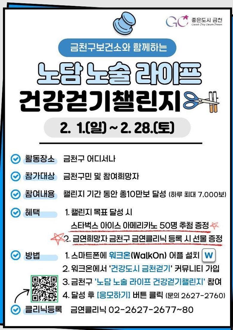 자세한 사항은 금천구보건소 건강증진센터(02-2627-2714)로 문의하면 안내받을 수 있다.