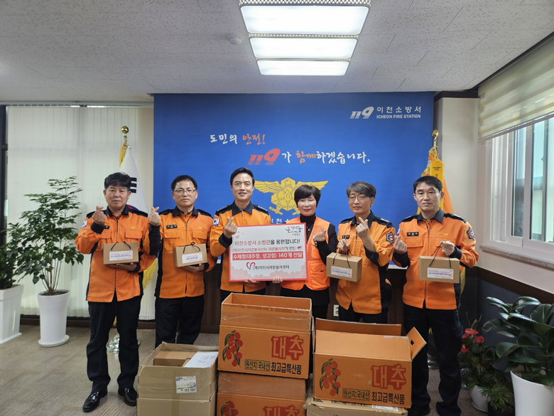 임일섭 이천소방서장은 “자원봉사자들의 따뜻한 마음이 담긴 수제청을 전달받아 더욱 뜻깊다”라며 “현장에서 근무하는 직원들에게 큰 힘이 될 것이며, 앞으로도 시민의 생명과 안전을 지키는 데 최선을 다하겠다”라고 말했다.