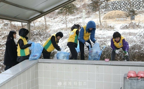 [세계타임즈 이정술 기자] 익산 신천지자원봉사단은 지난 21일 추운 날씨에도 불구하고 6가지 핵심사업 가운데 '제1회 자연아 푸르자' 환경정화 봉사활동을 펼쳤다.