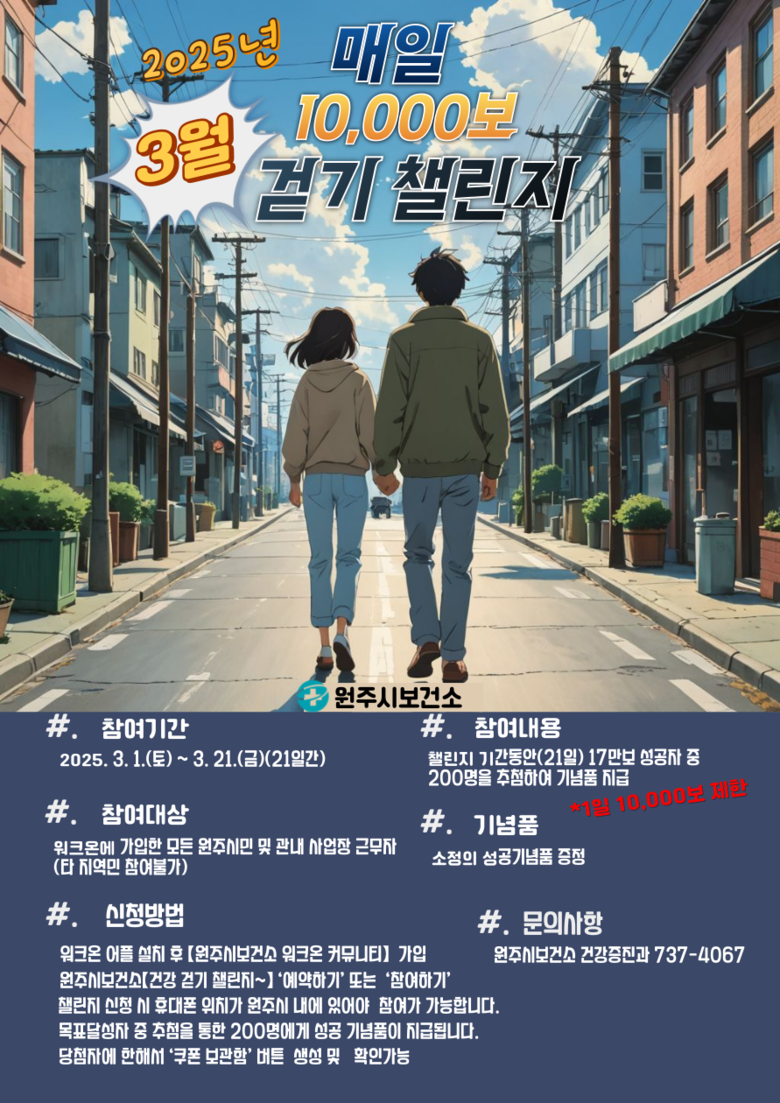 이번 챌린지는 3월 1일(토)부터 21일(금)까지 진행되며, 원주시민 누구나 참여할 수 있다.