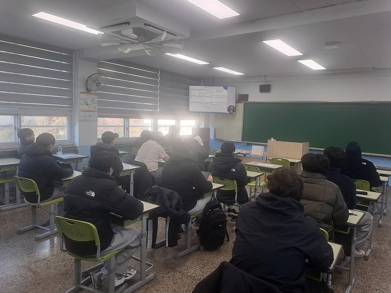 | ▲ 제작된 영상으로 교육받고 있는 고등학생들 모습 |