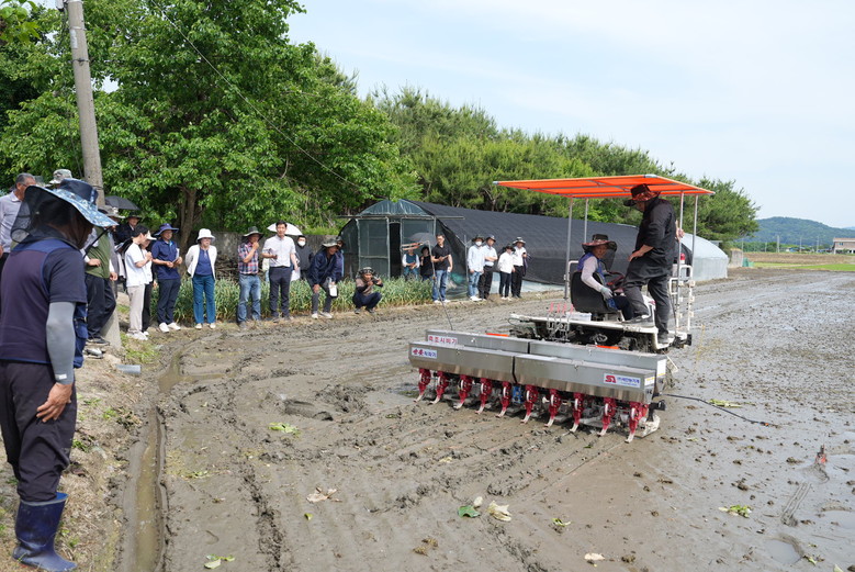 특히 이날 시연된 무논직파 기술은 볍씨를 바로 논에 파종함으로써 육묘, 못자리 설치 등 일련의 공정을 생략할 수 있어 노동력을 최대 40%까지 절감하고, 경영비도 20~30%가량 줄일 수 있는 획기적인 재배법으로 평가받고 있다. 단, 이 기술의 성공적 정착을 위해서는 파종 전 논의 균평 작업과 조류 피해 및 잡초 방제를 위한 핵심 기술 실천이 필수적이다.