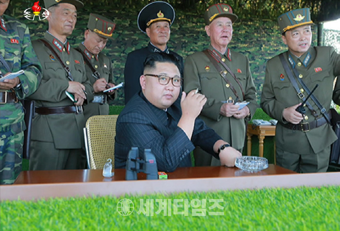 북한 조선중앙TV는 김정은 노동당 위원장이 선군절(8월 25일)을 맞아 북한 특수부대의 백령도와 대연평도 점령을 위한 가상훈련을 참관했다고 26일 보도했다. 2017.08.26. (출처=조선중앙TV 캡쳐)