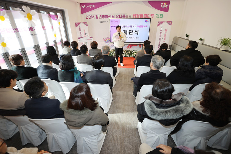 [동대문구 세계타임즈=이장성 기자] 서울 동대문구(구청장 이필형)는 28일 청년 창업 지원과 주민 생활 문화 기능을 결합한 복합시설 ‘DDM 청년창업센터 유니콘Ⅱ·휘경열린마루’ 개관식을 열고 본격적인 운영에 들어갔다.