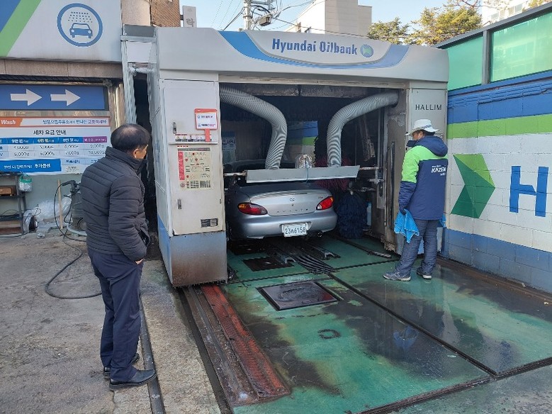 | ▲ 도봉구 민간자율환경감시단이 지역 내 한 주요소 세차시설을 점검하고 있다. |