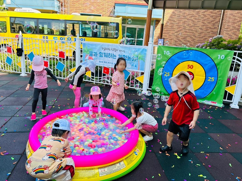 행사는 일률적인 물놀이 대여 방식에서 벗어나 교사들이 유아의 발달과 흥미를 면밀히 고려해 직접 기획한 7개의 물놀이 영역으로 다채롭게 구성되었다. 유아들은 각 영역에서 놀이를 스스로 선택하고 주도적으로 참여함으로써 더욱 풍부하고 의미 있는 놀이 경험을 쌓을 수 있었다.