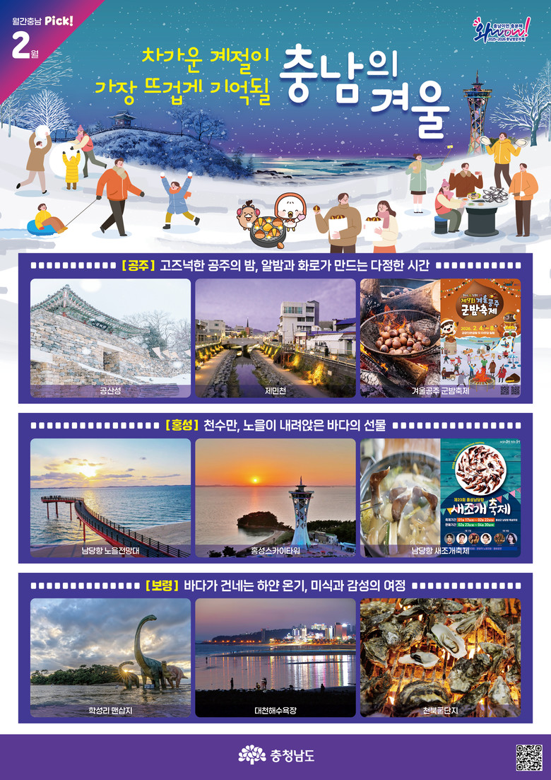 도 관계자는 “설 연휴가 있는 2월에 충남에서 사랑하는 가족과 함께 그 어느 때보다 따뜻하고 행복한 추억을 만들어 보시길 바란다”라고 말했다.