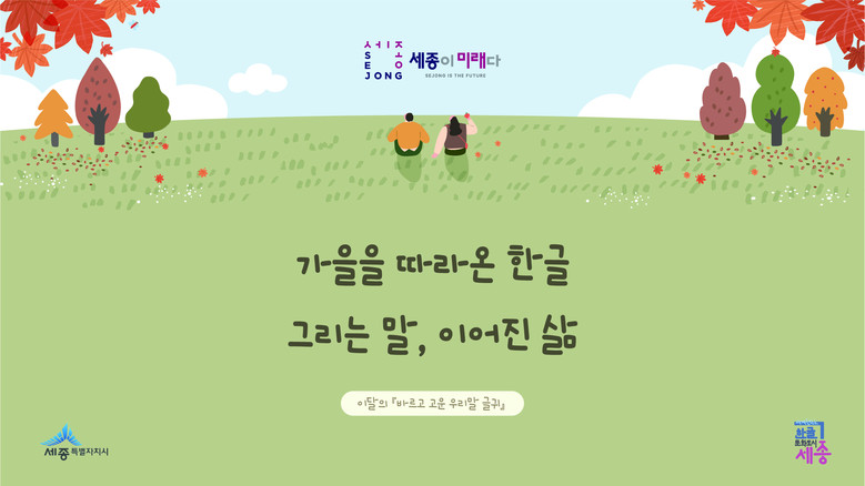 세종특별자치시(시장 최민호)가 한글날과 ‘2025 한글 국제 프레 비엔날레’ 개최를 맞아 시민 참여를 거쳐 선정한 9∼10월 ‘바르고 고운 우리말 글귀’를 발표했다.