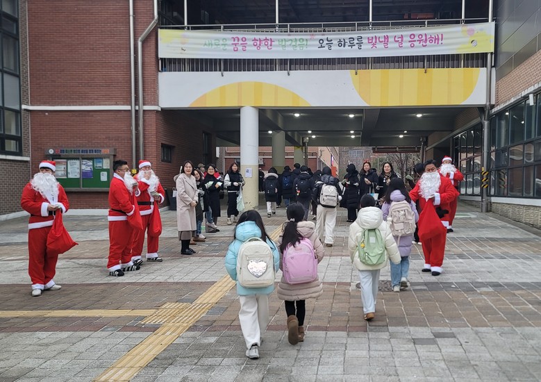 이날 행사는 산타 복장으로 의상을 맞춘 학부모들의 학생 등교 환영을 시작으로, 미리 준비한 선물 증정이 이어지는 등 학생들에게 나눔과 감사의 의미를 담은 성탄절 추억을 미리 만들어 주었다. 특히 ‘난 너무 사랑스러워’ 등의 글이 담긴 ‘산타와 함께하는 포토존 사진 촬영’은 학생들의 큰 관심을 받았다.
