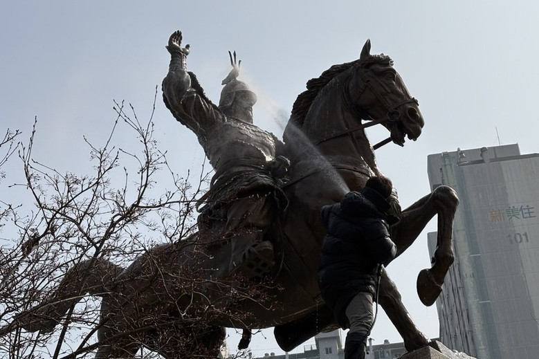| ▲ 수원특례시, 봄 맞아 도시 곳곳 대청소(광교공원 강감찬 장군 동상 세척) |