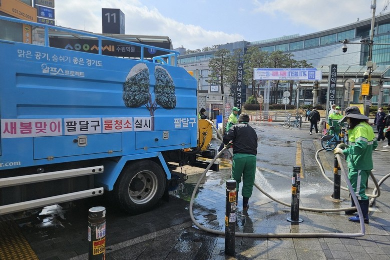 팔달구는 지난 20일 살수차와 고압 세척 장비를 투입해 수원역 로데오거리를 중심으로 주변 보행로, 이면도로, 버스정류장 인근을 물청소했다. 행궁동 주민자치회와 공직자들은 23일 수원천 일대의 쓰레기와 불법 투기 폐기물을 수거하는 환경정화 활동을 했다.