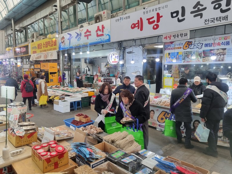 이 날 행정국 직원들은 명절 준비에 필요한 농산물, 식료품 등을 구매하며 소비 촉진을 통한 지역경제 살리기에 동참하였고, 안명환 구경시장 상인회장 등 전통시장 상인들을 만나 애로사항을 청취했다.