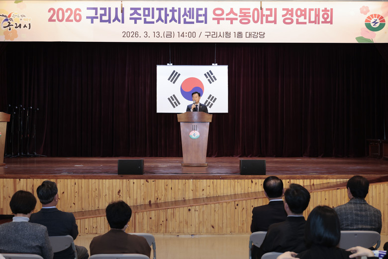 [구리시 세계타임즈=송민수 기자] 신동화 구리시의회의장은 13일, 각 지역의 주민자치센터 문화 프로그램 수강생들이 평소 갈고닦은 실력을 뽐내고 주민 간 화합을 도모하는 축제의 장인 ‘2026 주민자치 우수동아리 경연대회’에 참석해 전문 문화예술인을 넘어 일반 시민들이 적극 참여하는 주민자치 문화예술 활동의 중요성을 강조하며 참석자들을 격려했다.