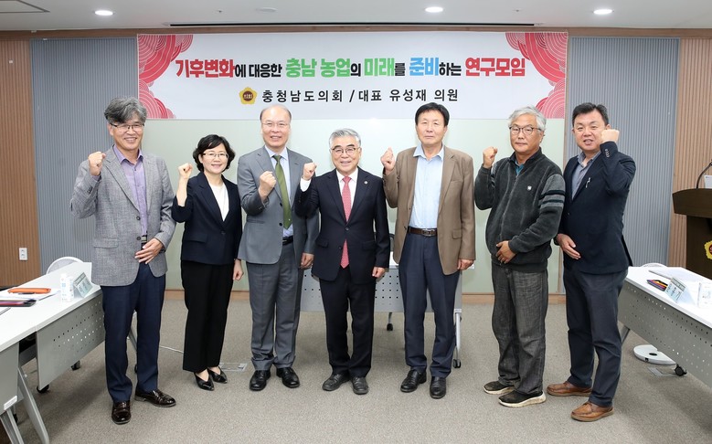 이번 회의는 연구모임 대표인 유성재 의원(천안5‧국민의힘)이 좌장을 맡았으며, 김성환 단국대 교수가 ‘기후변화에 대응한 충남 농업의 미래 준비 방안 연구’ 중간보고를 진행했다.