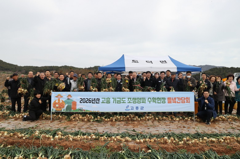 [고흥군 세계타임즈=우덕현 기자] 고흥군(군수 공영민)은 조생양파 수확기를 맞아 지난 5일 금산면 대흥리 일원 양파 재배단지에서 ‘2026년산 양파 수확 현장 들녘간담회’를 개최하고 양파 재배 농가의 애로사항을 청취하는 현장 소통의 시간을 가졌다.