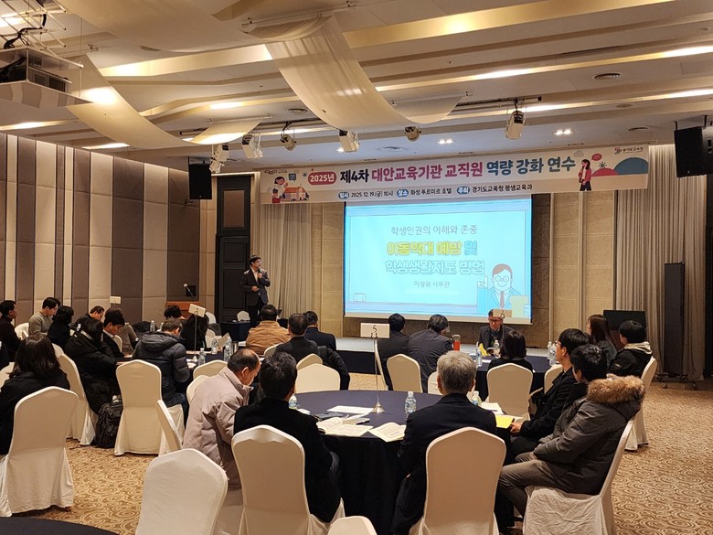 [경기도 세계타임즈=송민수 기자] 경기도교육청(교육감 임태희)은 19일 푸르미르 토파즐홀에서 대안 교육기관 운영 내실화와 안전한 학습망 구축을 위한 ‘2025 등록 대안교육기관 기관장 역량 강화 연수’를 개최했다.
