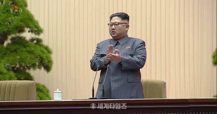북한 조선중앙TV는 김정은 노동당 위원장이 21일 열린 조선노동당 제5차 세포위원장대회에 참석했다고 22일 보도했다. 이날 대회에는 김정은 위원장의 여동생인 김여정 당부부장이 주석단에 앉았다. 2017.12.22. (출처 = 조선중앙TV 캡처)