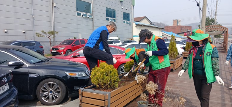 이날 전의면자율방재단원, 전의면사무소 직원 등 15명은 거리 화분의 잡풀과 고사 식물을 제거하고 새로운 식물을 심는 보식 작업을 통해 가로 경관을 정비했다.
