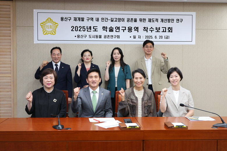 이인호 대표의원은 “이번 연구가 재개발 과정에서 발생하는 도시동물 문제를 해결하고, 주민과 동물이 조화롭게 공존하는 용산구를 만드는 데 중요한 초석이 될 것이라 기대한다”며, “연구 결과를 바탕으로 현장에 적용 가능한 실질적인 정책 마련에 최선을 다하겠다”고 밝혔다.