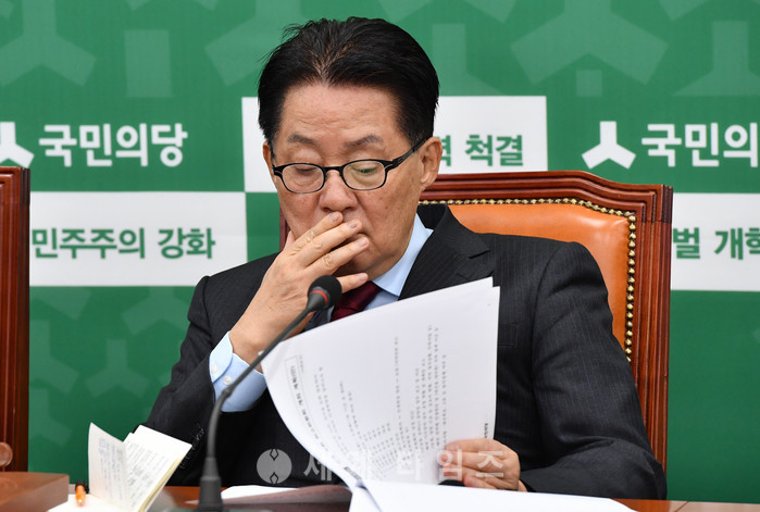 3일 오전 서울 여의도 국회 국민의당 당 대표실에서 열린 제8차 최고위원회의에 참석한 박지원 대표가 회의자료를 살피고 있다. 2017.02.03.