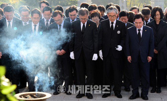 문재인 더불어민주당 대선후보가 19일 오전 서울 강북구 수유동에 위치한 4·19 민주묘지를 찾아 참배하고 있다. 2017.04.19.