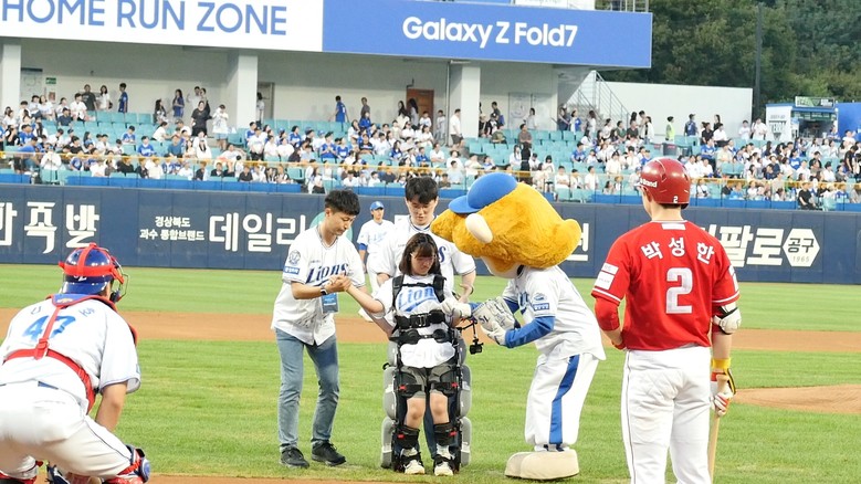 김예원 학생은 9월 11일(목) 오후 6시 30분 대구삼성라이온즈파크에서 열린 프로야구 경기에서 AI웨어러블 보행재활로봇의 도움을 받아 마운드에 올라 시구를 실시했다. 평소 휠체어를 이용해 생활하는 김예원 학생은 2024년 3월부터 학교의 ‘AI 보행재활로봇 교육 프로그램’에 참여해 왔다.