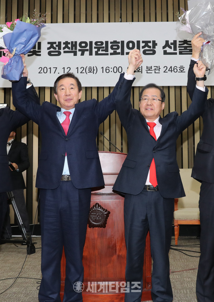 [세계타임즈 이채봉 기자]홍준표 자유한국당 대표는 13일 김성태 신임 원내대표 당선과 관련해 "함께 힘을 모아 구체제와 단절하고 신보수주의 정당으로 거듭날 것을 약속드린다"고 밝혔다.