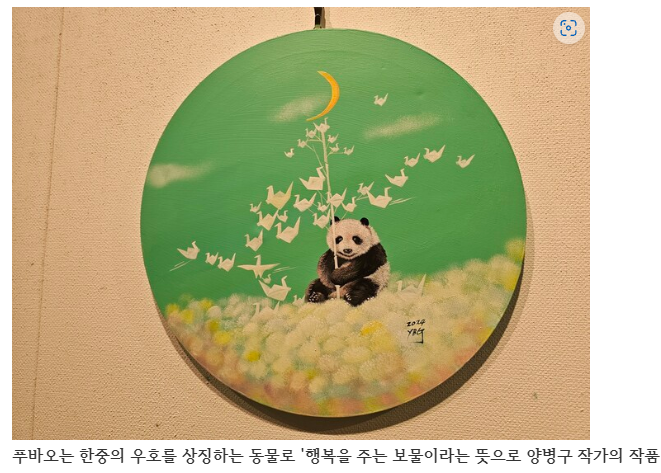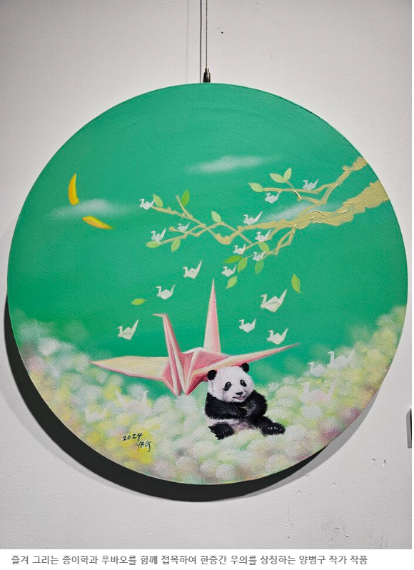 즐겨 그리는 종이학과 푸바오를 함께 접목하여 한중간 우의를 상징하는 양병구 작가 작품