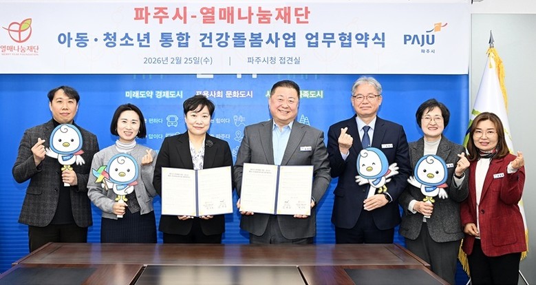 [파주시 세계타임즈=송민수 기자] 파주시는 25일 사회복지법인 열매나눔재단과 관내 취약계층 아동·청소년을 위한 통합 건강돌봄지원사업 업무 협약을 맺었다.