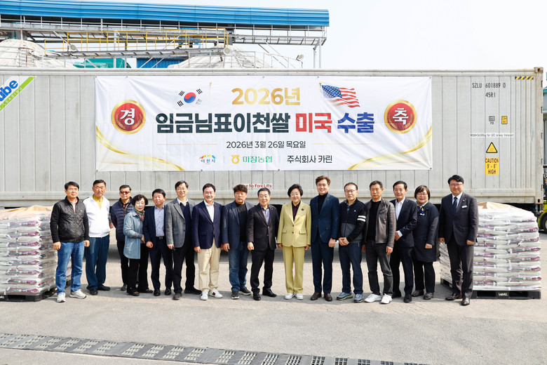 이천시는 2026년 3월 26일 이천시 마장농협 미곡종합처리장에서 임금님표이천쌀 3차 대미 수출 물량 18.8톤을 출고했다고 밝혔다.
